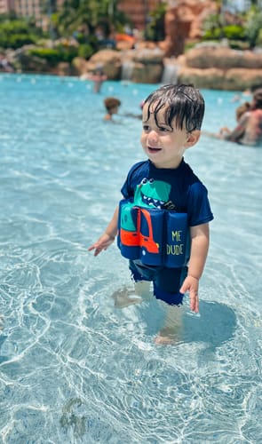 Conçu pour offrir à la fois sécurité et plaisir, ce maillot de bain flottant permet aux petits nageurs de s'amuser en toute confiance.