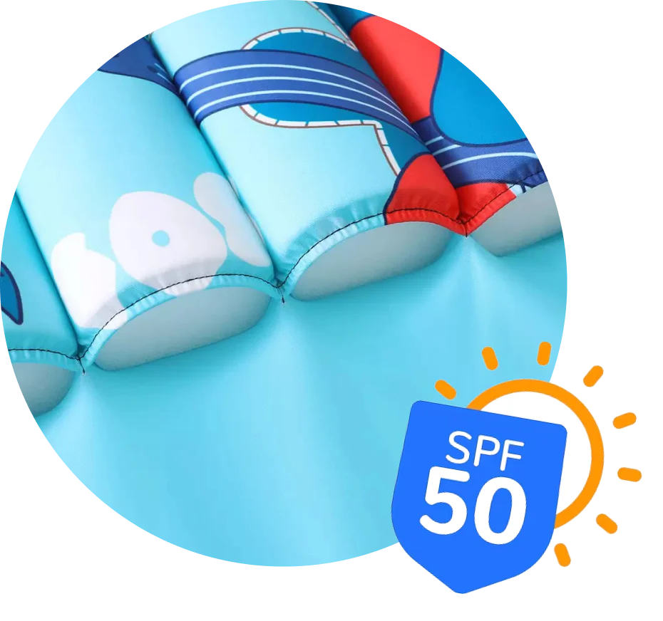 Avec une protection solaire SPF 50+, le Floatie Swim protège la peau délicate de votre enfant contre les coups de soleil et les dommages cutanés.
